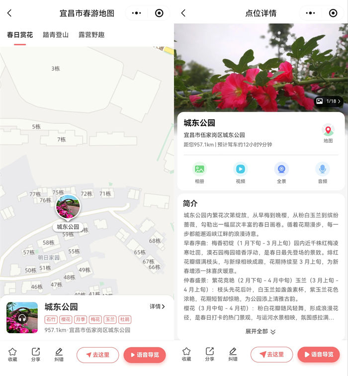 宜昌市春游地图以时空数据及数字化手段赋能民生服务,不仅为公众解锁宜昌春日美景提供有力支撑,也进一步提升了城市公共服务的精细化、智慧化水平,让春日出行更有温度、更有效率。